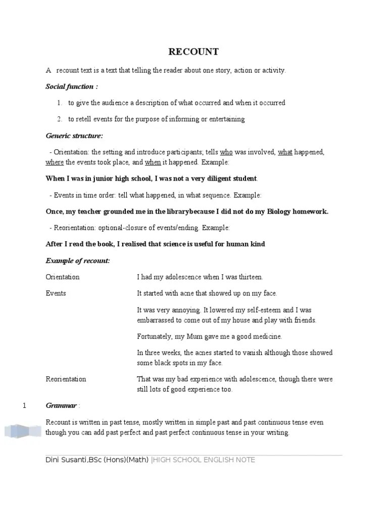 Recount text adalah salah satu jenis teks yang berisi cerita pengalaman kita di masa lampau.