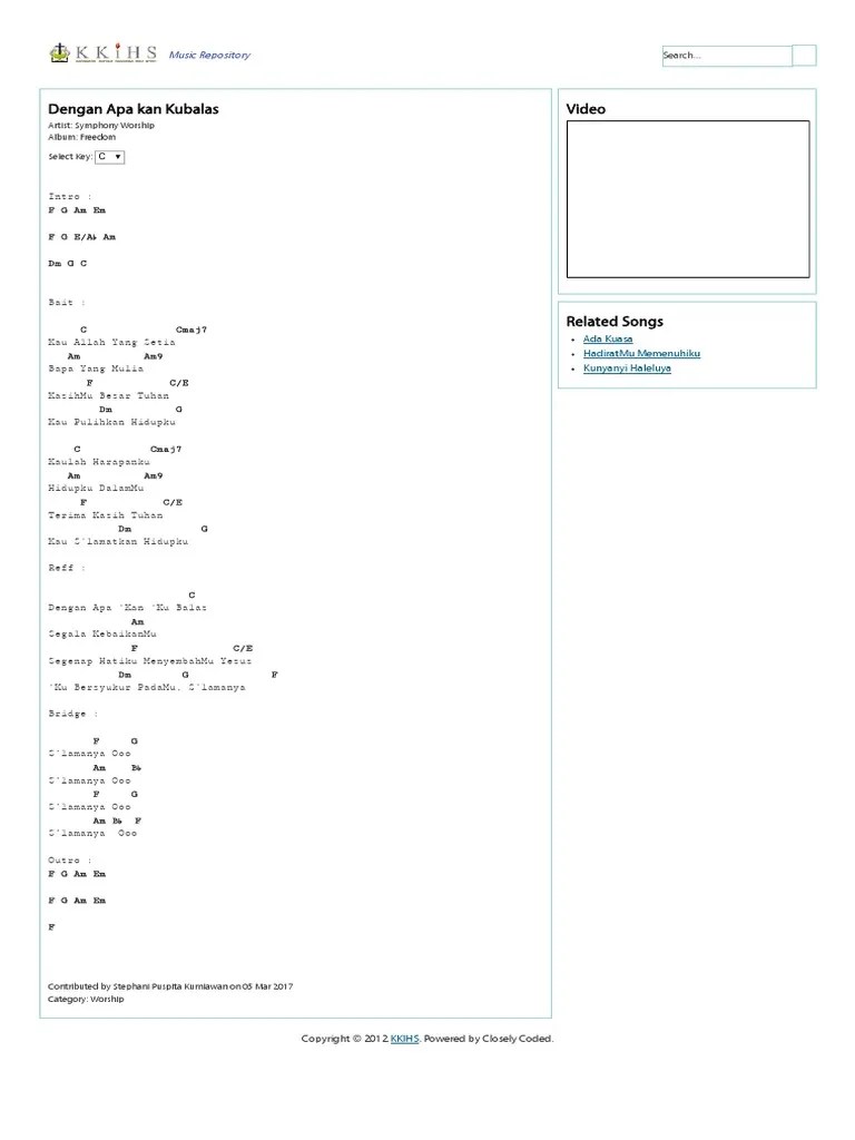 Dengan apa 'kan 'ku balas am segala kebaikanmu f c/e | smule social singing karaoke app. Chord dengan apa kan kubalas (symphony worship) intro : Kau allah yang setia, bapa yang muliakasihmu besar tuhankau pulihkan hidupku. June 30, 2017 by admin. Kau allah yang setia, bapa yang mulia. Lyrics for dengan apa kan ku balas (with grezia epiphania) by ps. Kumpulan lirik dan akor lagu rohani. Lirik lagu rohani kristen dengan apa kan ku balas symphony worship dengan words dan music oleh wawan lee. Layanan mobile dari situs entertainment terbesar indonesia, kapanlagi.com. Dengan tempo yang lambat lagu penyembahan ini . Dengan apa 'kan ku balas. D dmaj7 kau allah yang setia bm bm9 bapa yang .